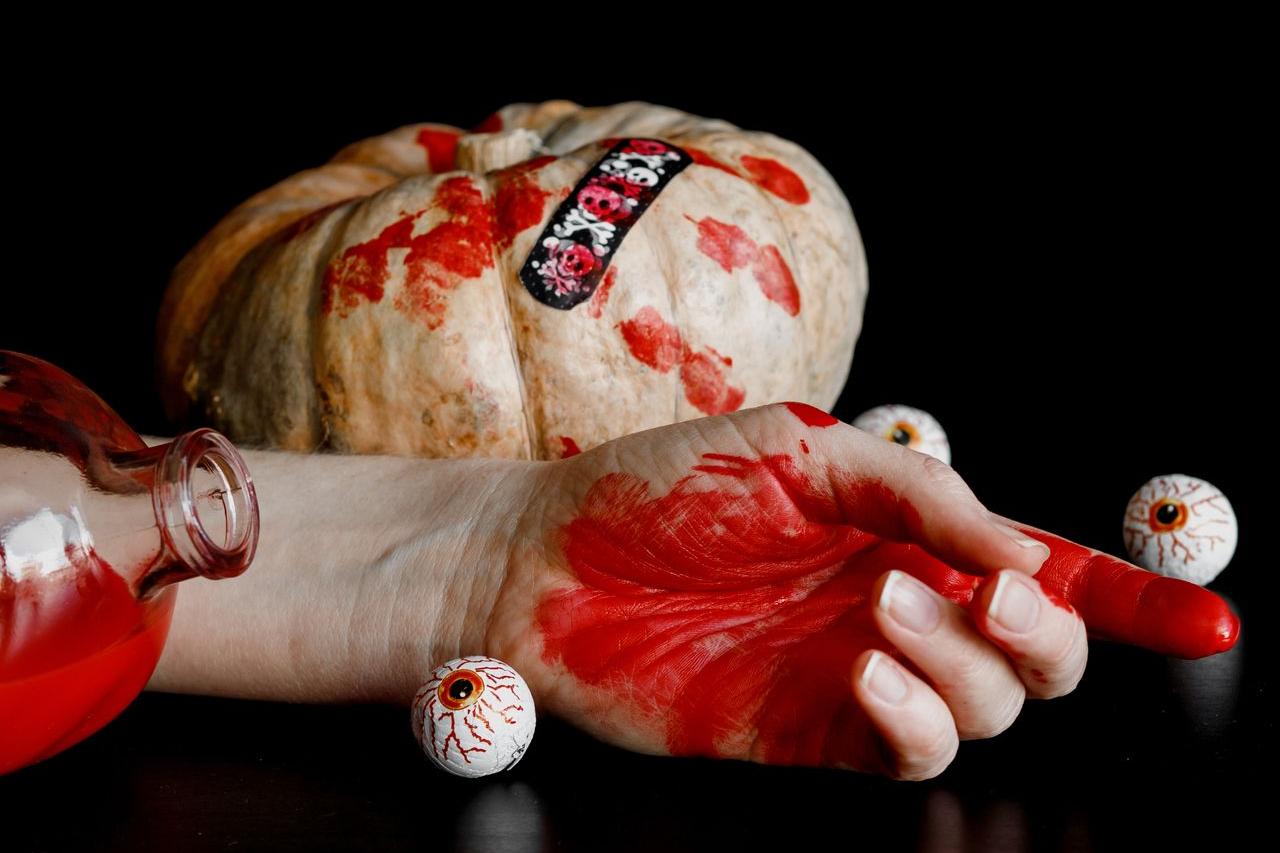 1.Sangre: algo que nunca puede faltar en una decoración de Halloween es la sangre, ya que es uno de los elementos que más asusta. Existen numerosos métodos para llenar tu baño de sangre, puedes hacerlo con sangre artificial o con vinilos en forma de huellas de manos y pies ensangrentadas, o manchas de líquido rojo.