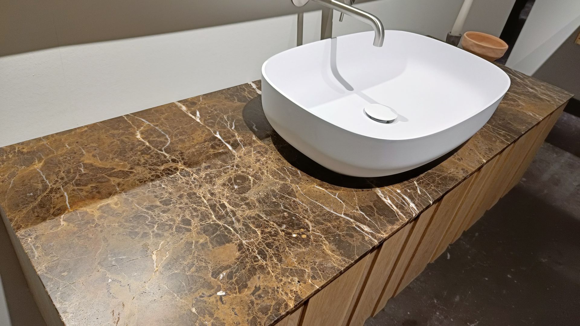 3. Encimeras y lavabos con texturas naturales