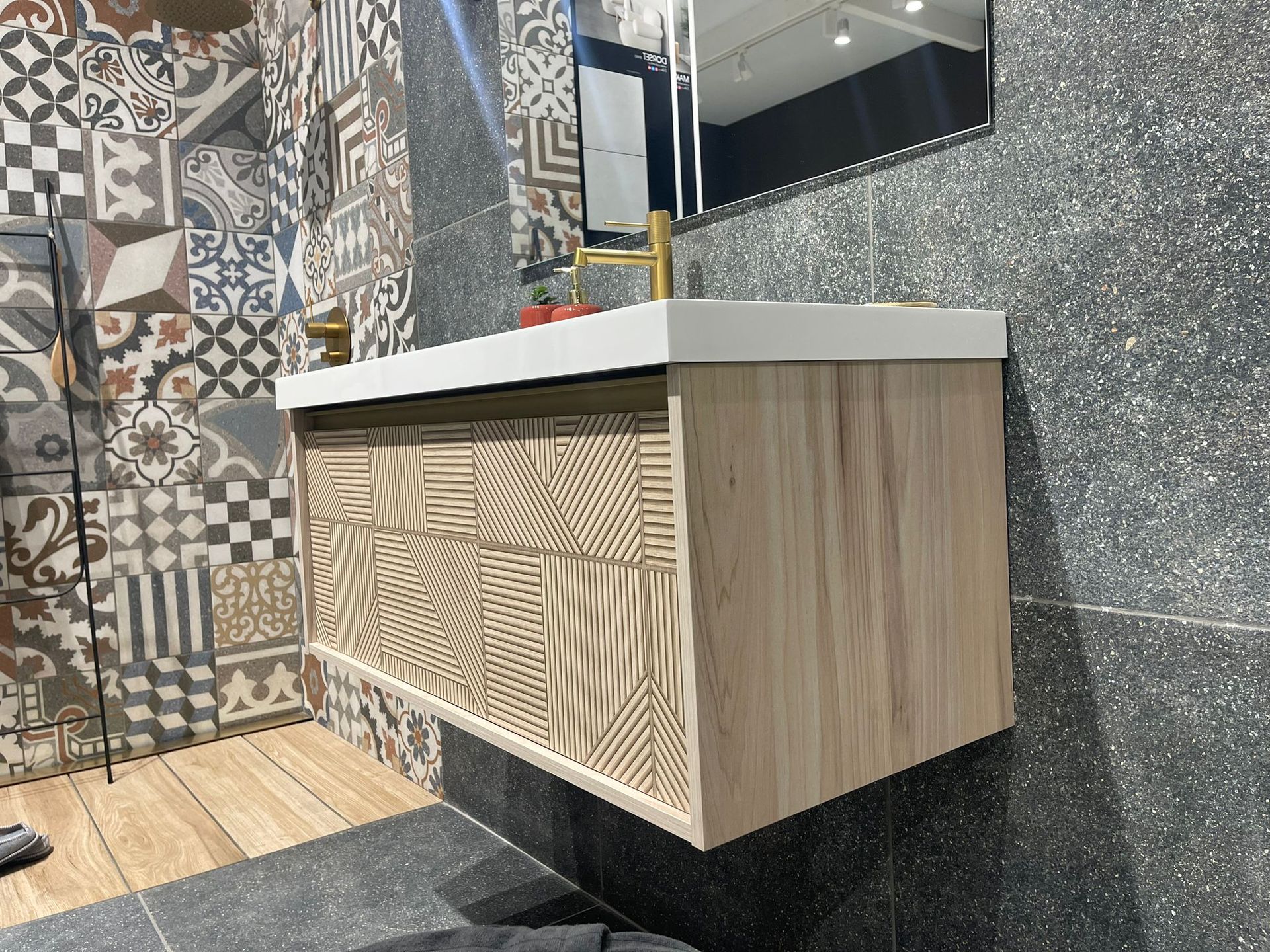 Los muebles de baño también se suman a la tendencia de las texturas.