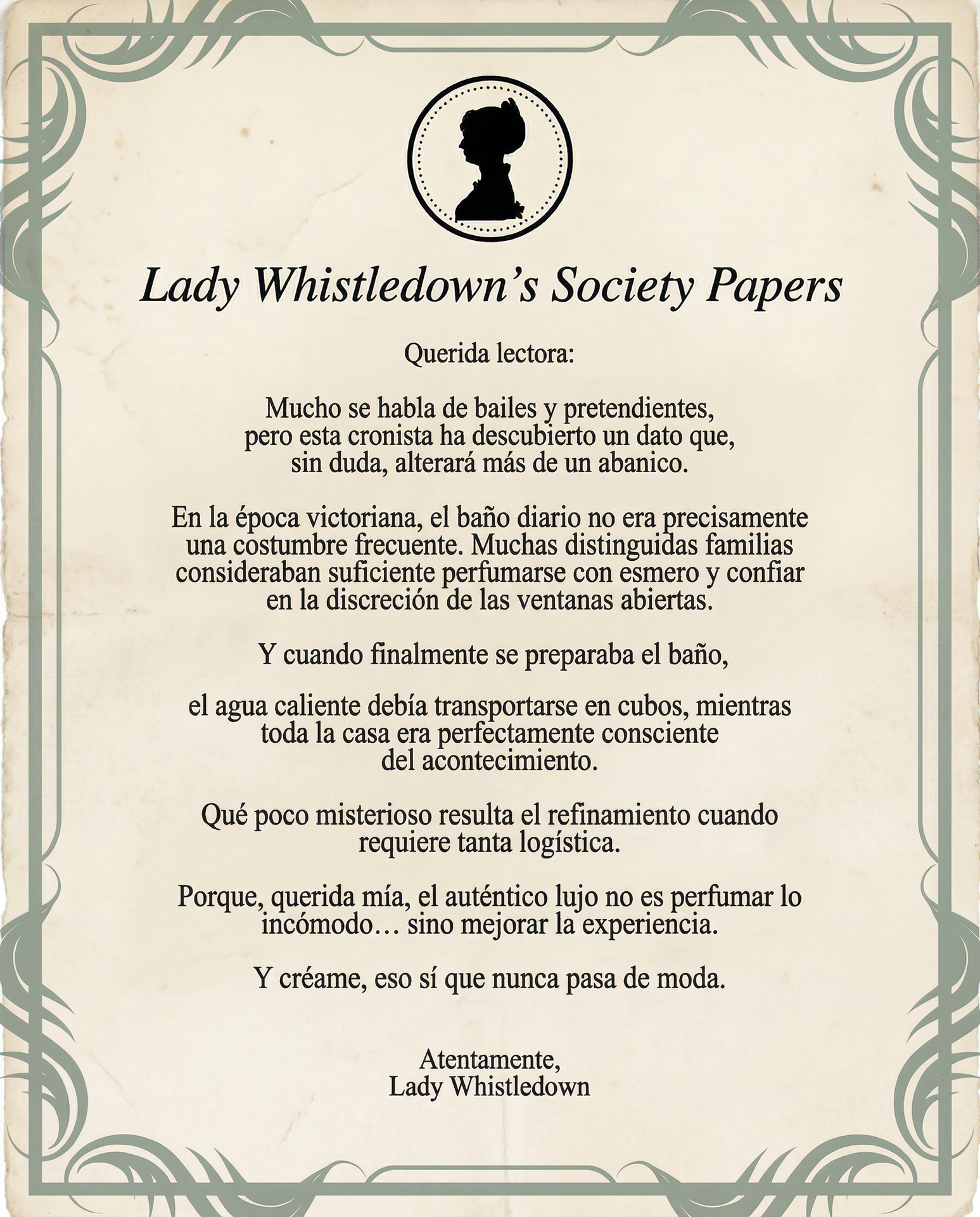 En definitiva, detrás del refinamiento que vemos en Los Bridgerton se escondía una realidad mucho menos glamurosa, pero extraordinariamente reveladora: la evolución del baño no solo cambió los hogares, sino también la forma en que las personas entendían la salud, la intimidad y la propia idea de civilización.