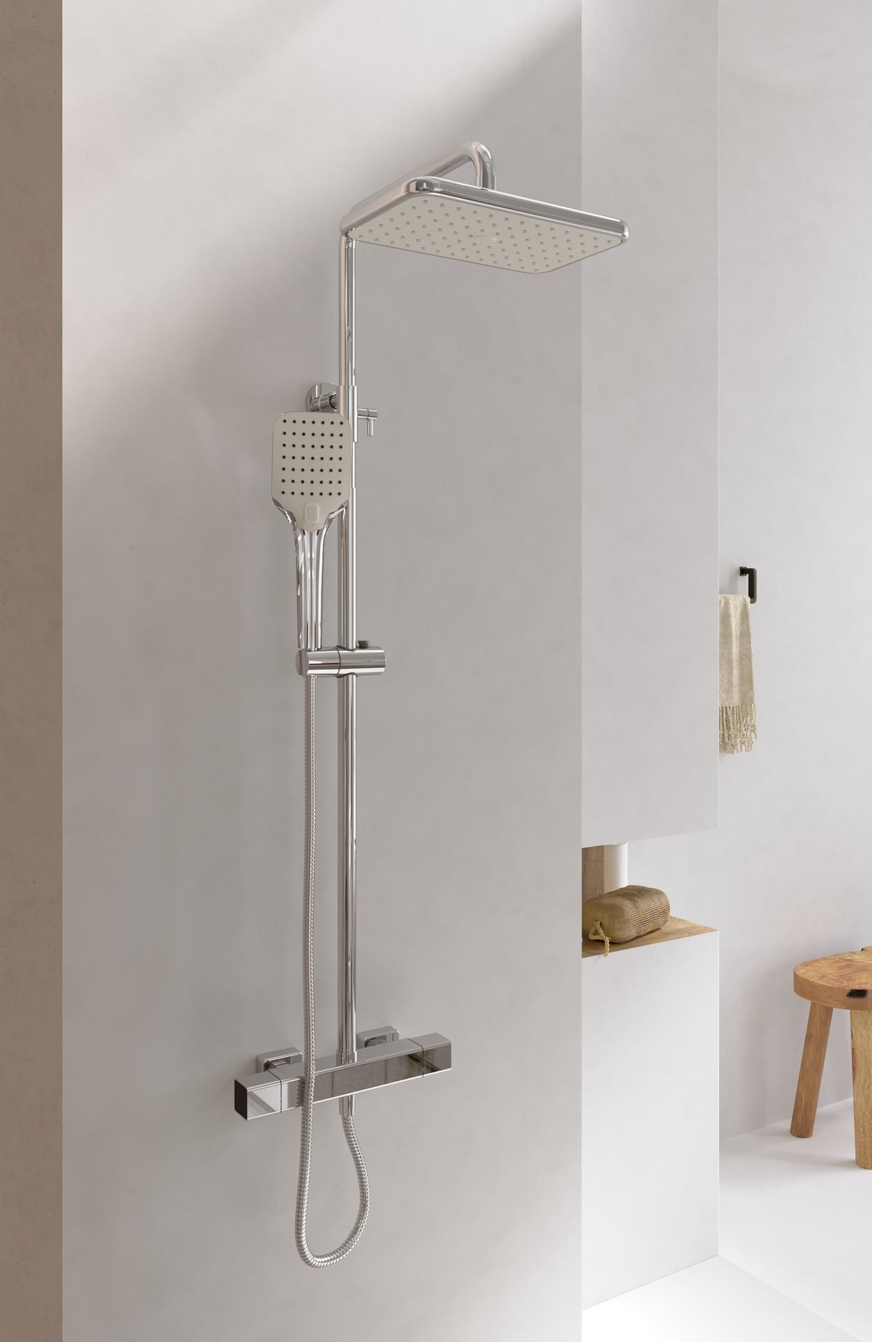 Disponibles en acabado cromo y negro mate, con rociadores y mangos de ducha en versión redonda o cuadrada, adaptándose a todo tipo de estilos.